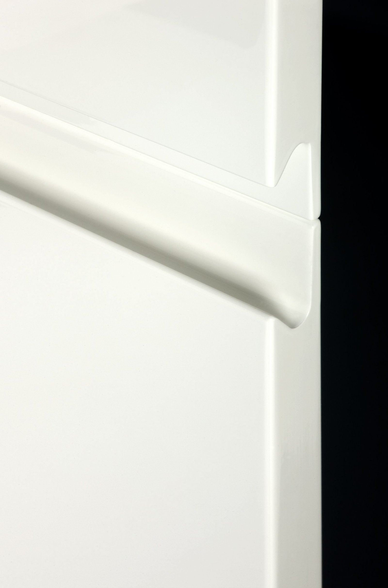 Use wide deep pan drawers with internal and external corner posts to continue the handle line around the corners creating longer lines to the eye, giving an extra perception of space as it draws the eye in a continual line